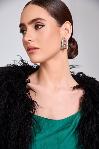 - Vintage stud earrings with rhinestone and glass pearl inlay